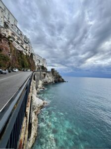 It’s worth noting that this same man, who speaks so spiritually about surrender and trust, still completely unravels when I lean against a handrail overlooking a cliff. I’ll place one casual elbow down, and suddenly he’s gripping my arm, whisper-hissing, “Noelle, no,” like I’m about to stage-dive into the Mediterranean. He can handle Italian drivers taking blind turns at thirty miles an hour (and him doing the same), but me resting on a guardrail is apparently too much existential risk for one man to process.